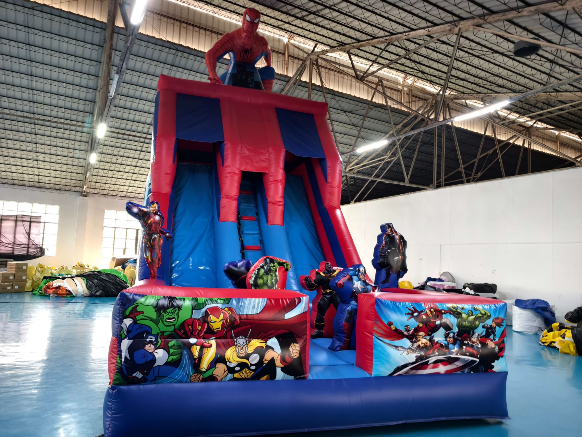 Spider-Man Inflatable Slide with Avengers Design - 7m Dual-Lane Marvel Attraction Unleash superhero energy with this 7-meter Marvel inflatable slide featuring classic Avengers graphics and dual racing lanes! Bold Spider-Man motifs meet original Avengers team-up artwork, creating instant viral appeal for birthday parties and mall activations. Commercial-grade PVC construction ensures safety for endless sliding battles, while the eye-catching 7m height dominates event spaces.