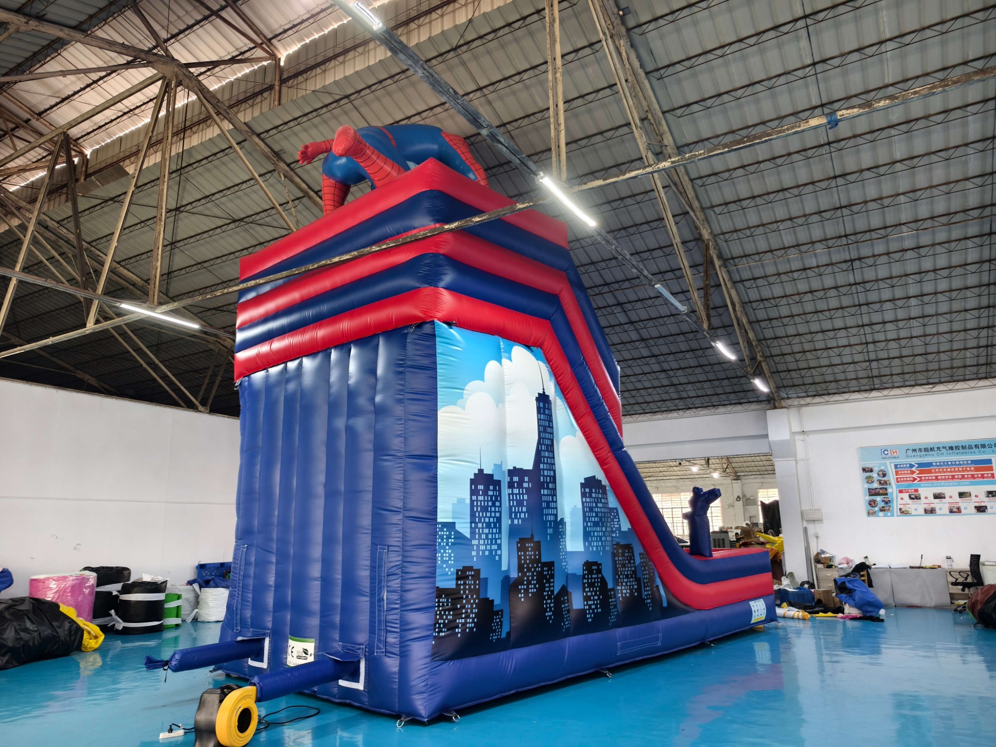 Thrill kids with our 23ft Spider-Man inflatable slide! Crafted from heavy-duty 0.55mm 1300D PVC with double-stitched seams, this superhero-themed attraction delivers safe, high-energy fun for birthdays, carnivals, and superhero adventures.