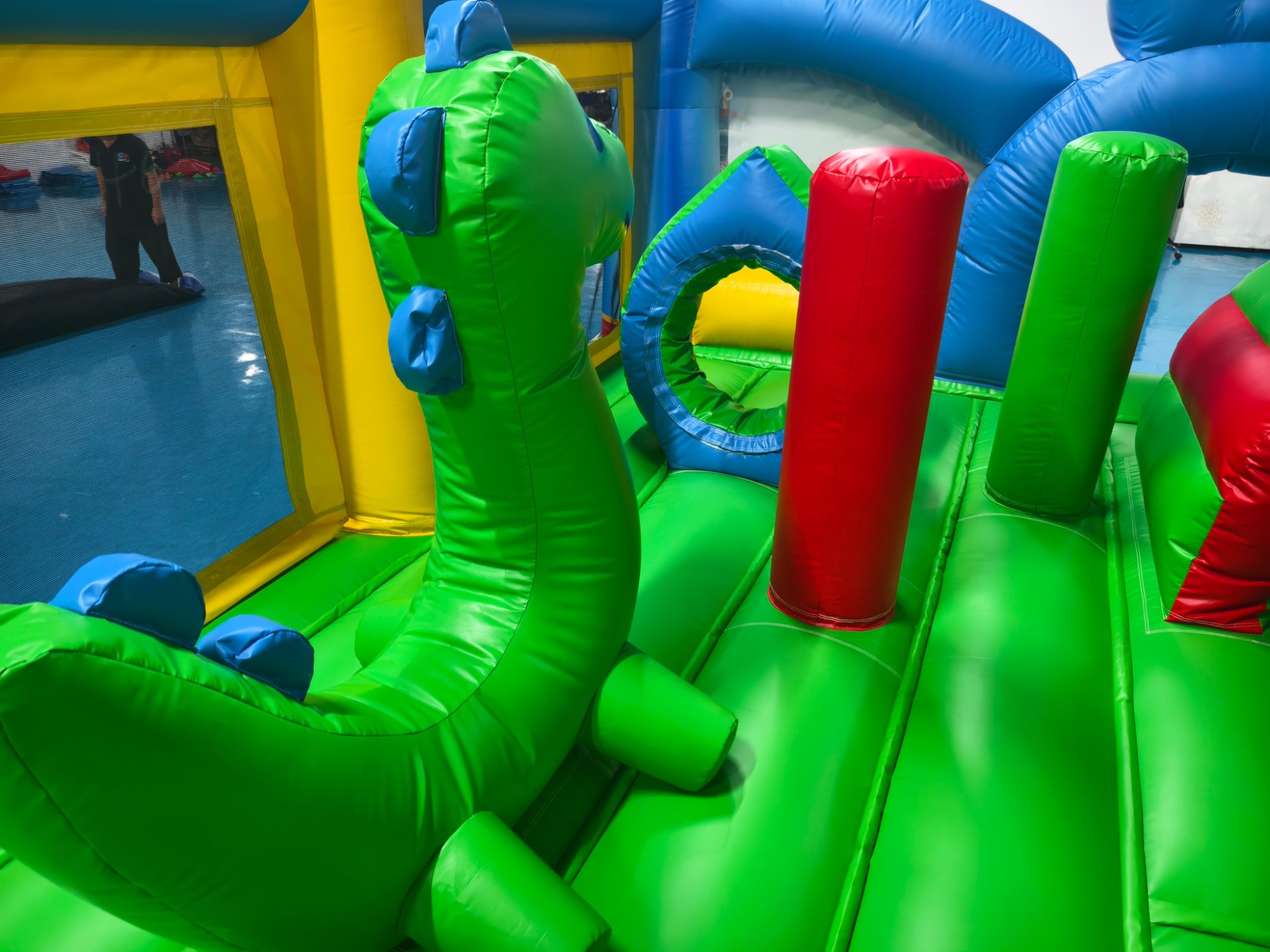 Made from premium PVC material, this jumping castle is built to withstand heavy use, making it perfect for commercial bounce house rental businesses. The durable fabric resists tearing, ensuring a longer lifespan even under frequent usage.