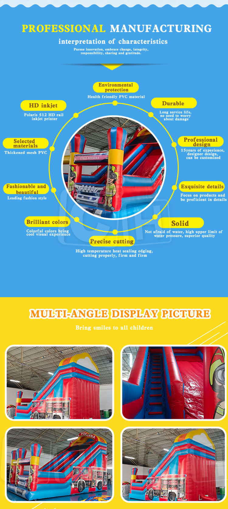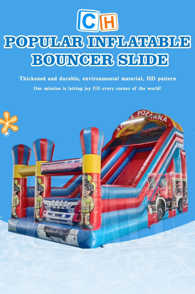 • CH Fire Engine Theme Inflatable Bounce House For Kids,Hot Sale Inflatable Bouncer Slide Combo