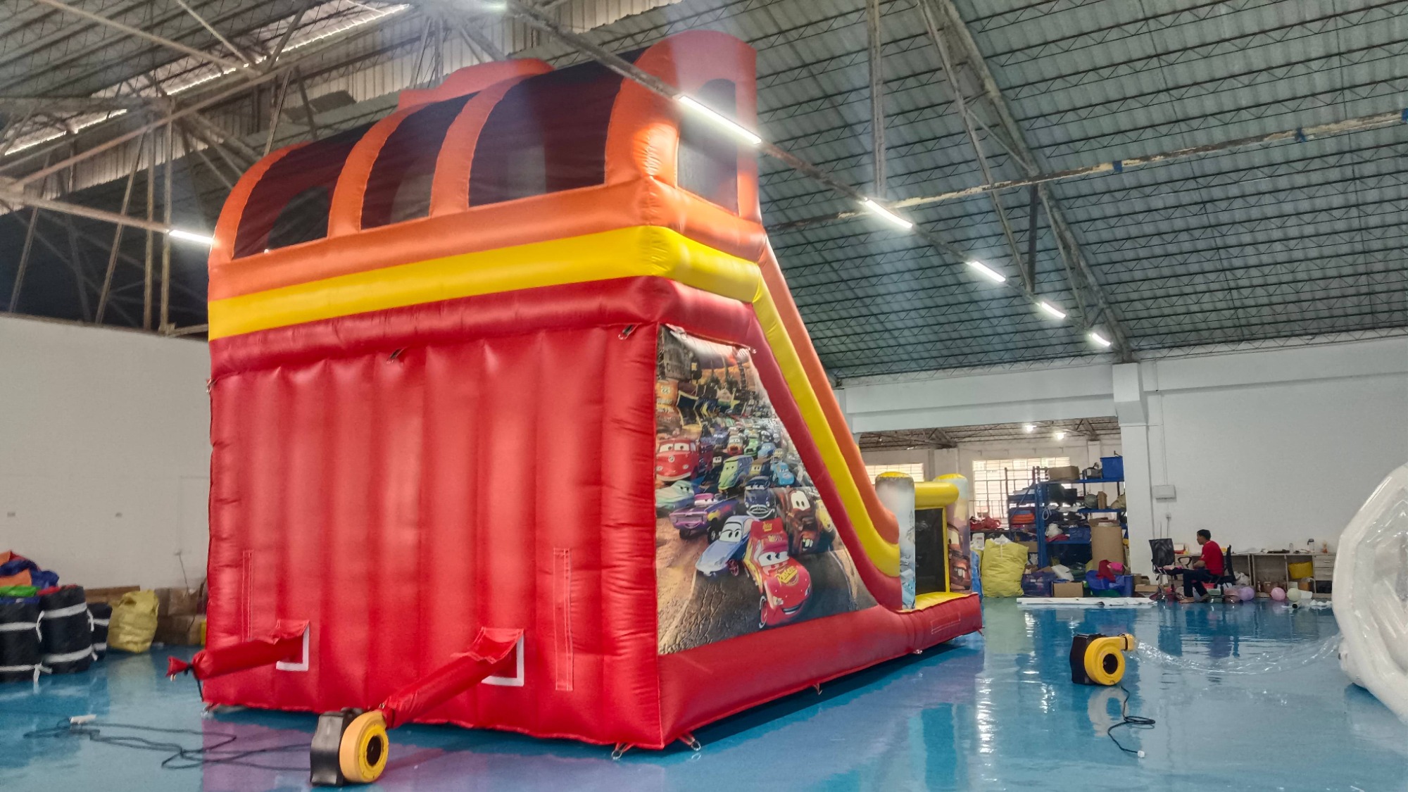 "Speed into Fun" Lightning McQueen Inflatable Slide – Interactive Race-Themed Adventure! Rev up the excitement with this Cars Movie-inspired inflatable slide, featuring a 3D Lightning McQueen topper cheering on racers from the summit! Measuring [insert dimensions], this dynamic slide combines high-speed sliding action with immersive desert racing details - including cactus bumpers at the base to navigate like Radiator Springs' iconic terrain.