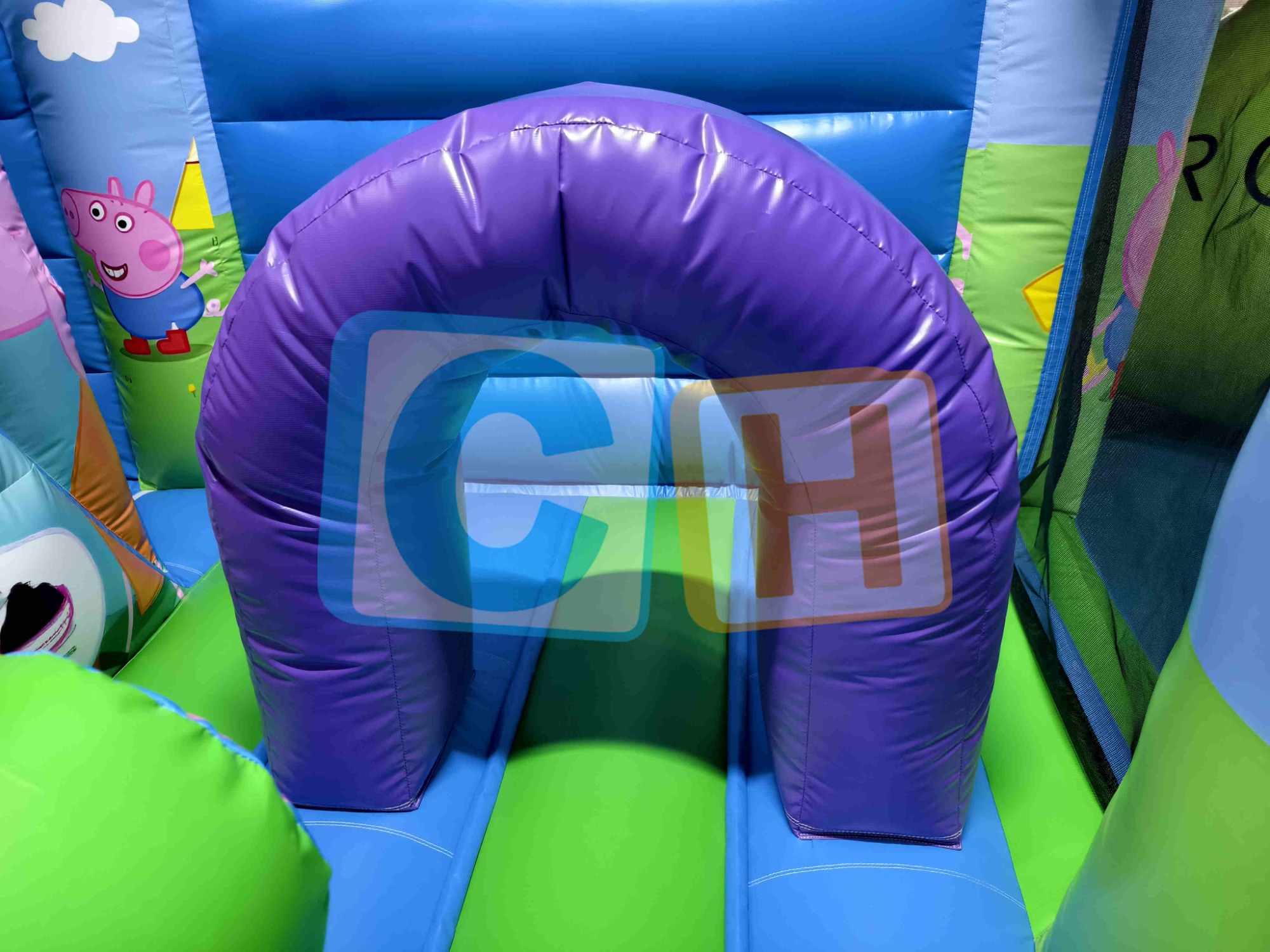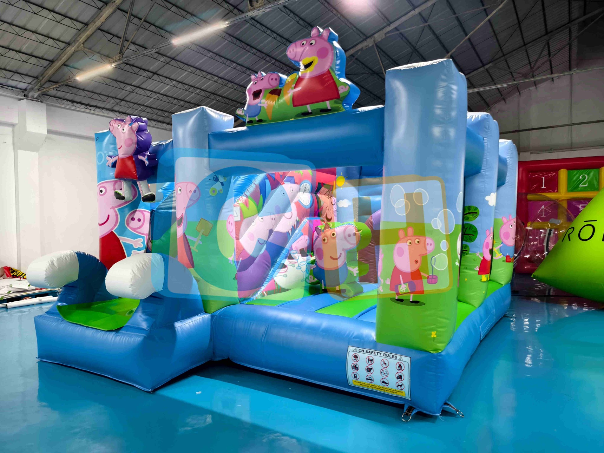 Peppa Pig Jumper CastleIncludes a commercial-grade blower for quick inflation. Perfect for birthdays or events, combining beloved characters with durable, kid-friendly fun. Let Peppa Pig-themed adventures spark joy!